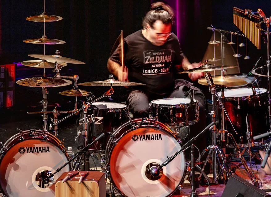 Throughout the evening, drummer Thierry Arpino demonstrated he was a master at jazz, rock, African rhythm, R&B, and pop rhythms. He’s backed legends like Joe Beck, Larry Coryell, and Jean-Luc Ponty. Arpino played Zildjian cymbals of all shapes and sizes that sat on a pole towering above his head. He’s endorsed by Yamaha, which explains the double floor bass drums. Before the show, I asked him how many pieces were in his kit – we counted and came up with twenty-four, not including the cajon, the box-shaped percussion instrument he used on “Fever.”