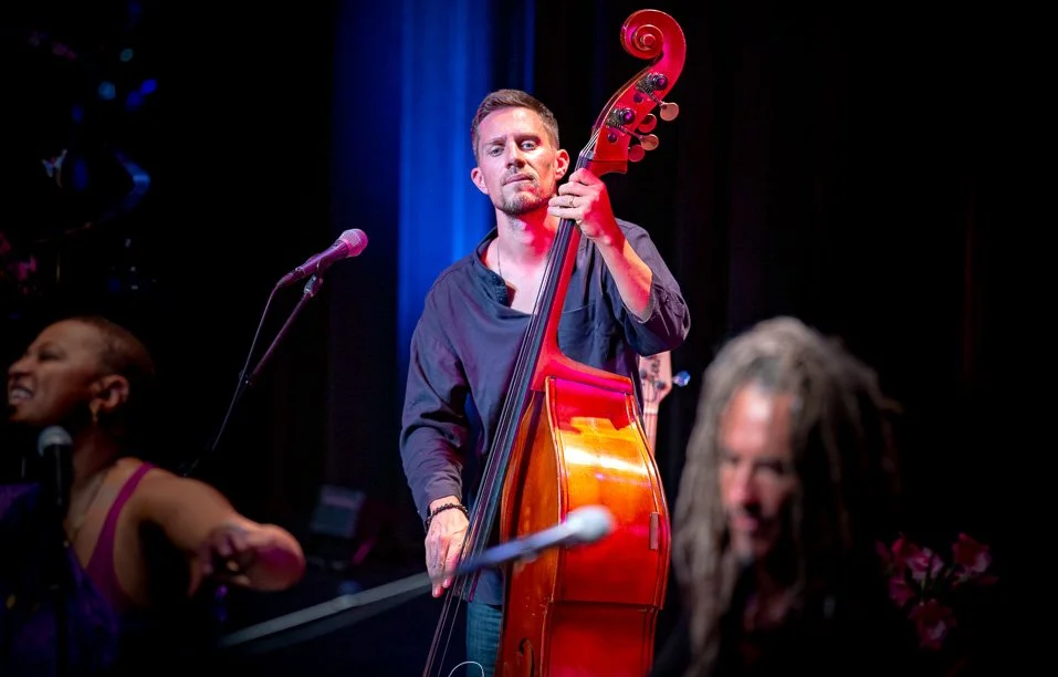 After a few quick band introductions, Fischer jumped into a fiery version of “Message in a Bottle.” Fischer’s 90-minute set was mostly filled with cover versions of hits by artists she had sung backup for, but the arrangements were almost unrecognizable, featuring polyrhythmic explorations and gospel/spiritual elements. “We like to be able to sing songs great artists made popular, and reinterpret them our own way," Fischer said in a soft, whispery voice she used for between-song patter. Fischer used two microphones throughout the show. One handheld mic was for straightforward singing, while the other produced ethereal echoes and delays. Offstage, a Kahilu sound tech watched for Fischer’s cues on which vocal parts to emphasize. The result was phenomenal.