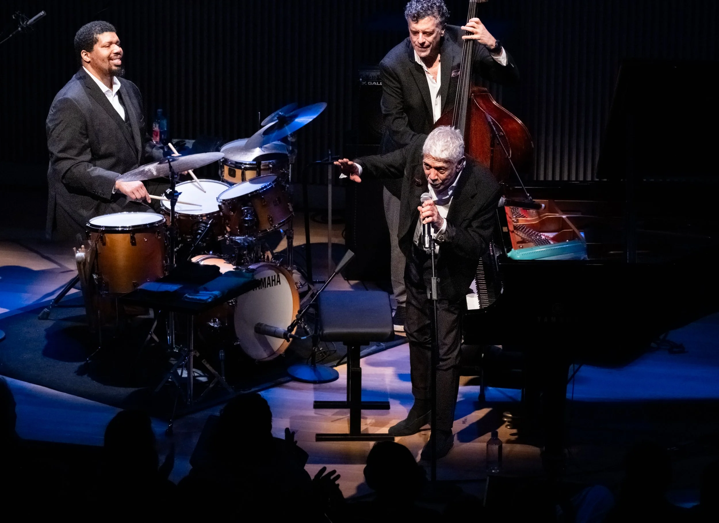 Monty Alexander’s Sunday night performance at SFJAZZ radiated the comfort of a seasoned band and the spark of an ongoing conversation. The trio sat closely together at center stage, which allowed Alexander to turn toward bassist Lorin Cohen mid-phrase, observe a reaction, and steer the music slightly in a different direction. Jason Brown maintained a lively and attentive pulse, giving the set both structure and energy. The onstage arrangement reflected the music itself: close, responsive, and interactive.
