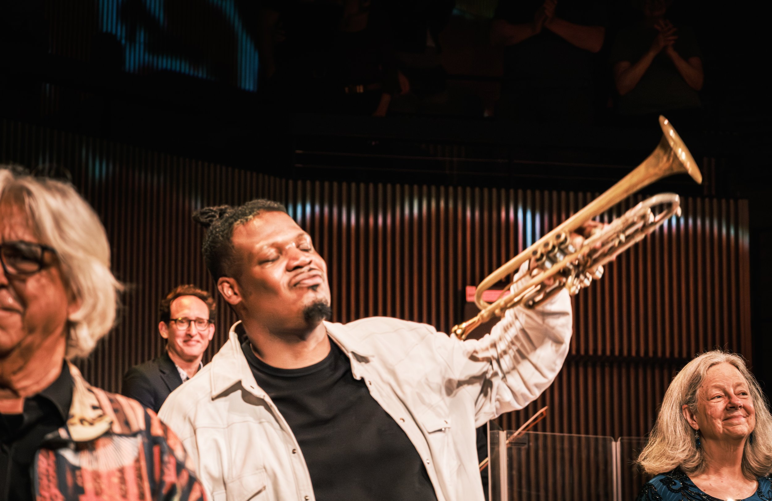 One of the night’s lighter moments happened when Goldstein introduced the ensemble and accidentally skipped over Harrold, only to have a woman in the front row call out, “Hey, what about the trumpet player?” Goldstein laughed, corrected himself, and Harrold responded with a smile and a raised horn. The exchange broke the formal spell for a moment, making the room feel more communal.